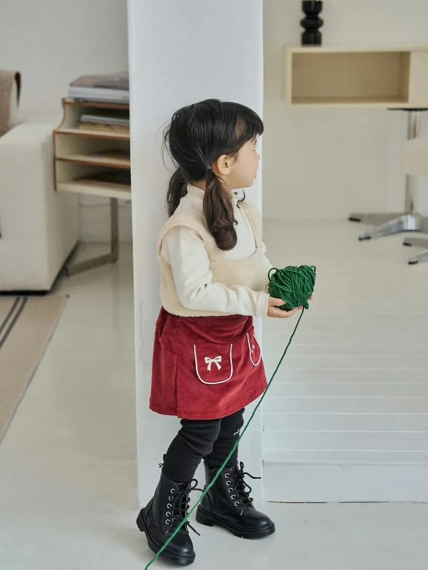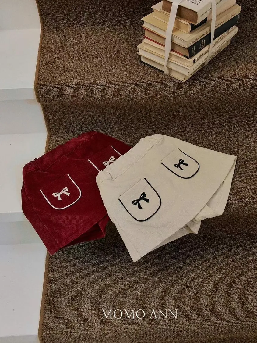 現貨.燈芯絨撞色蝴蝶結褲裙