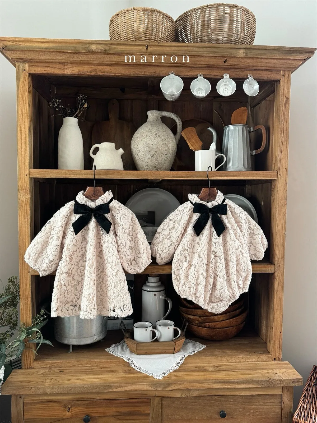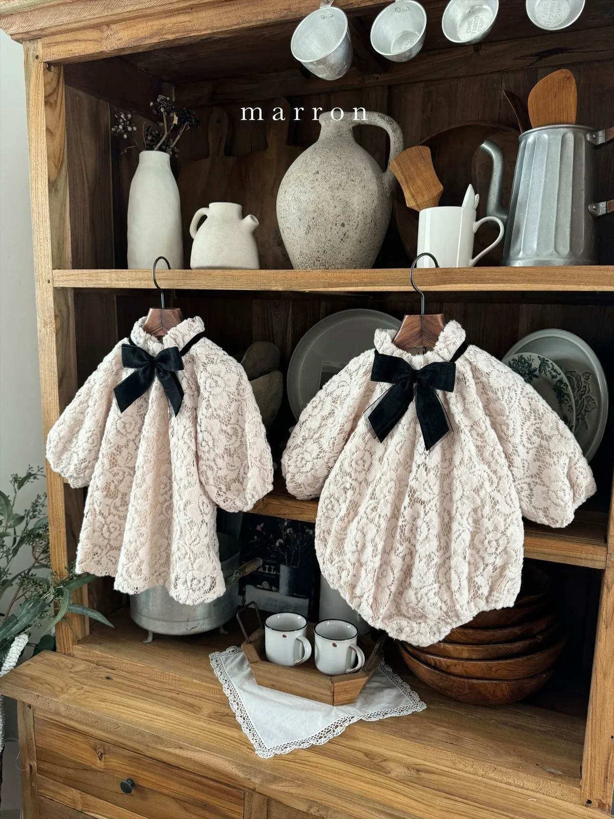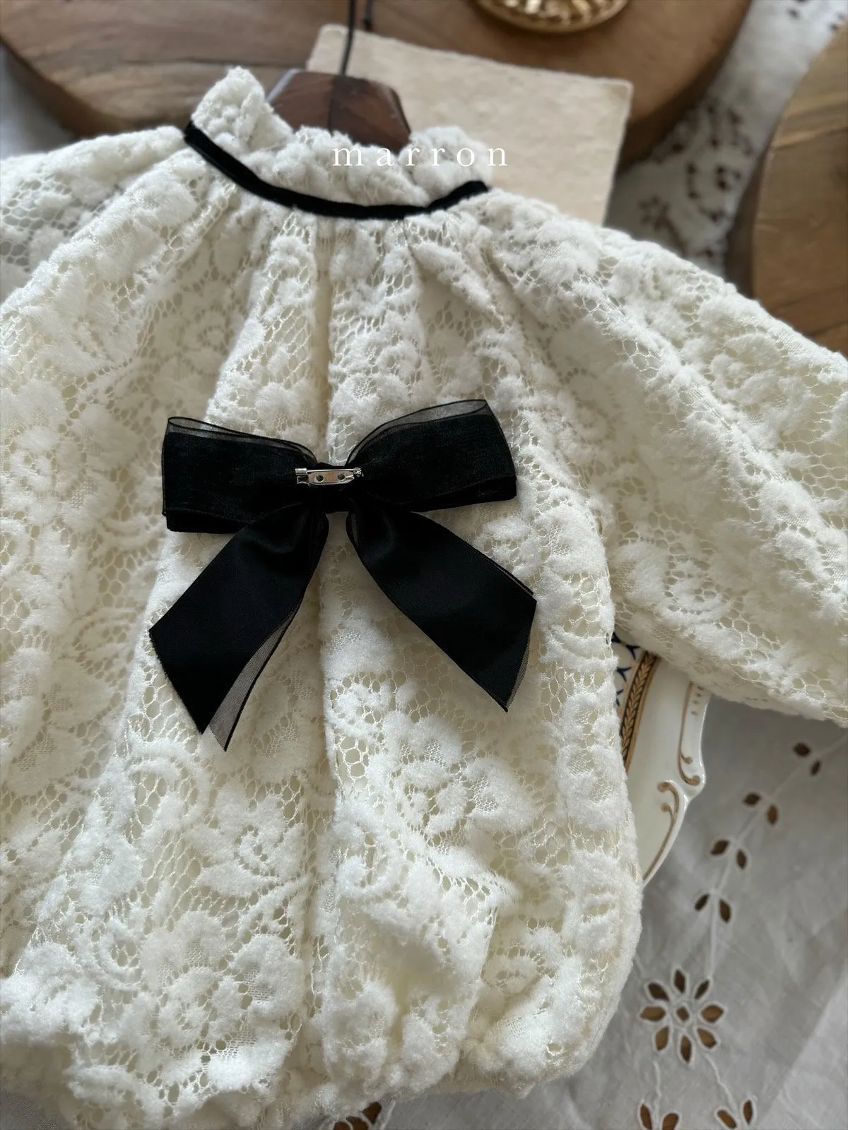 大蝴蝶結簍空蕾絲包屁衣