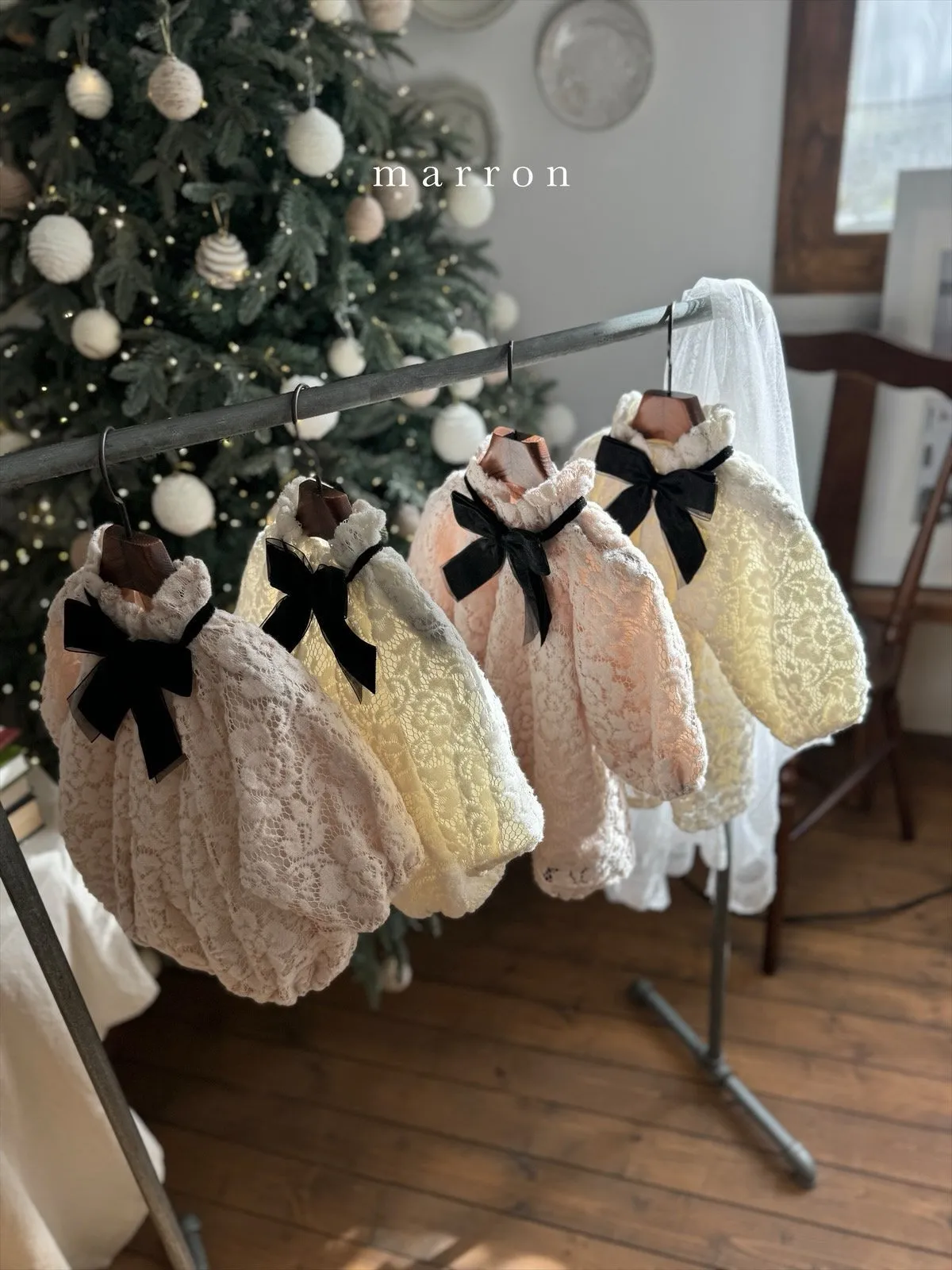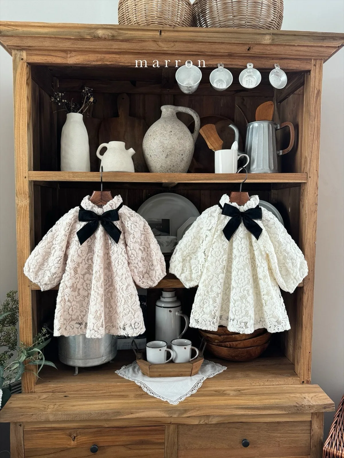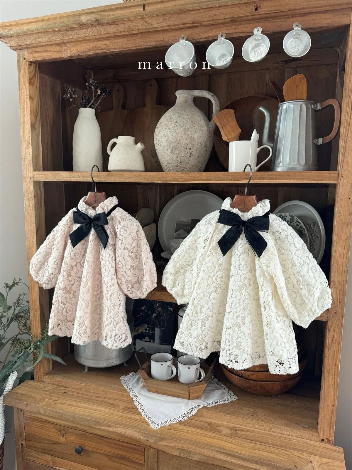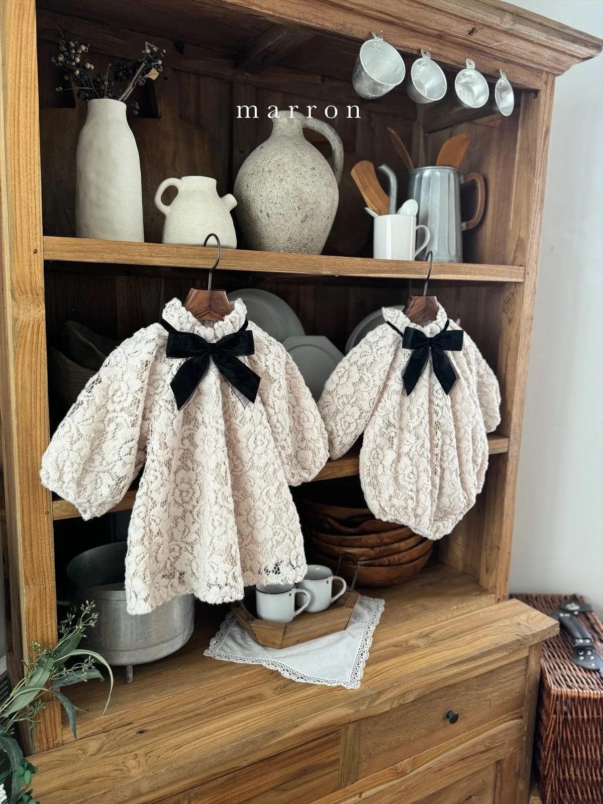 大蝴蝶結簍空蕾絲包屁衣