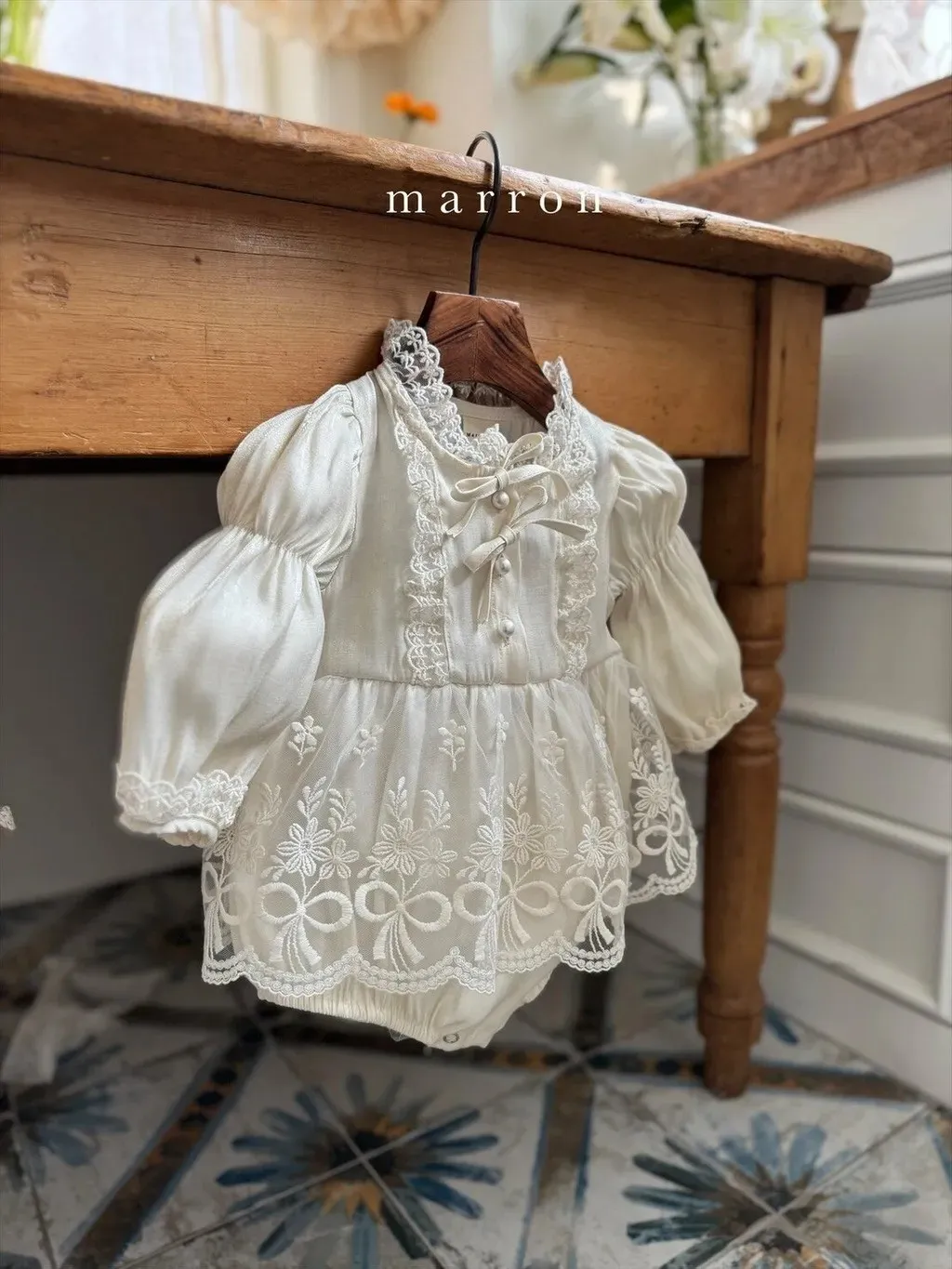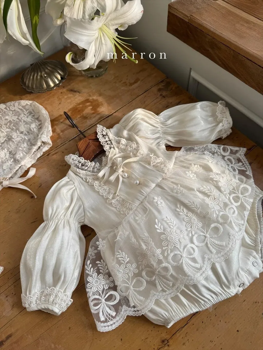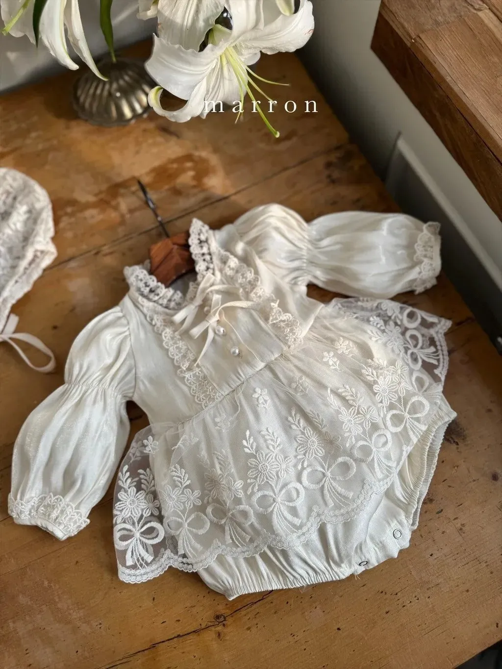 現貨.baby珍珠光澤蕾絲包屁