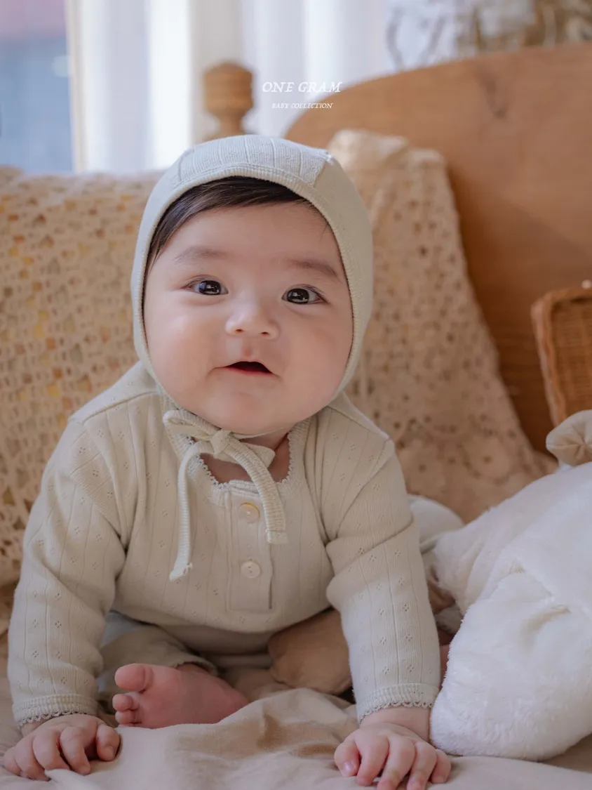 現貨.新生兒純棉直紋包屁套裝(含帽子)