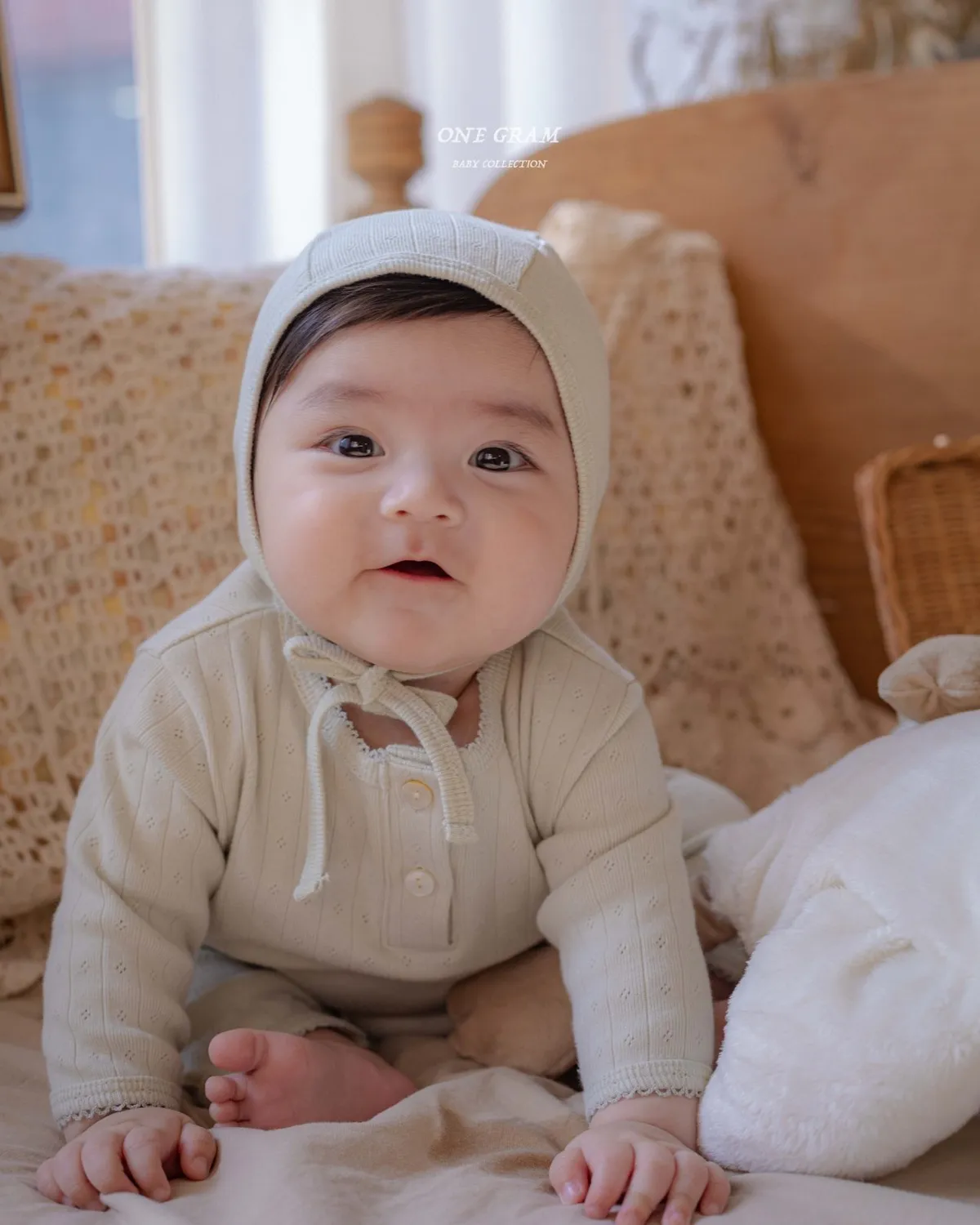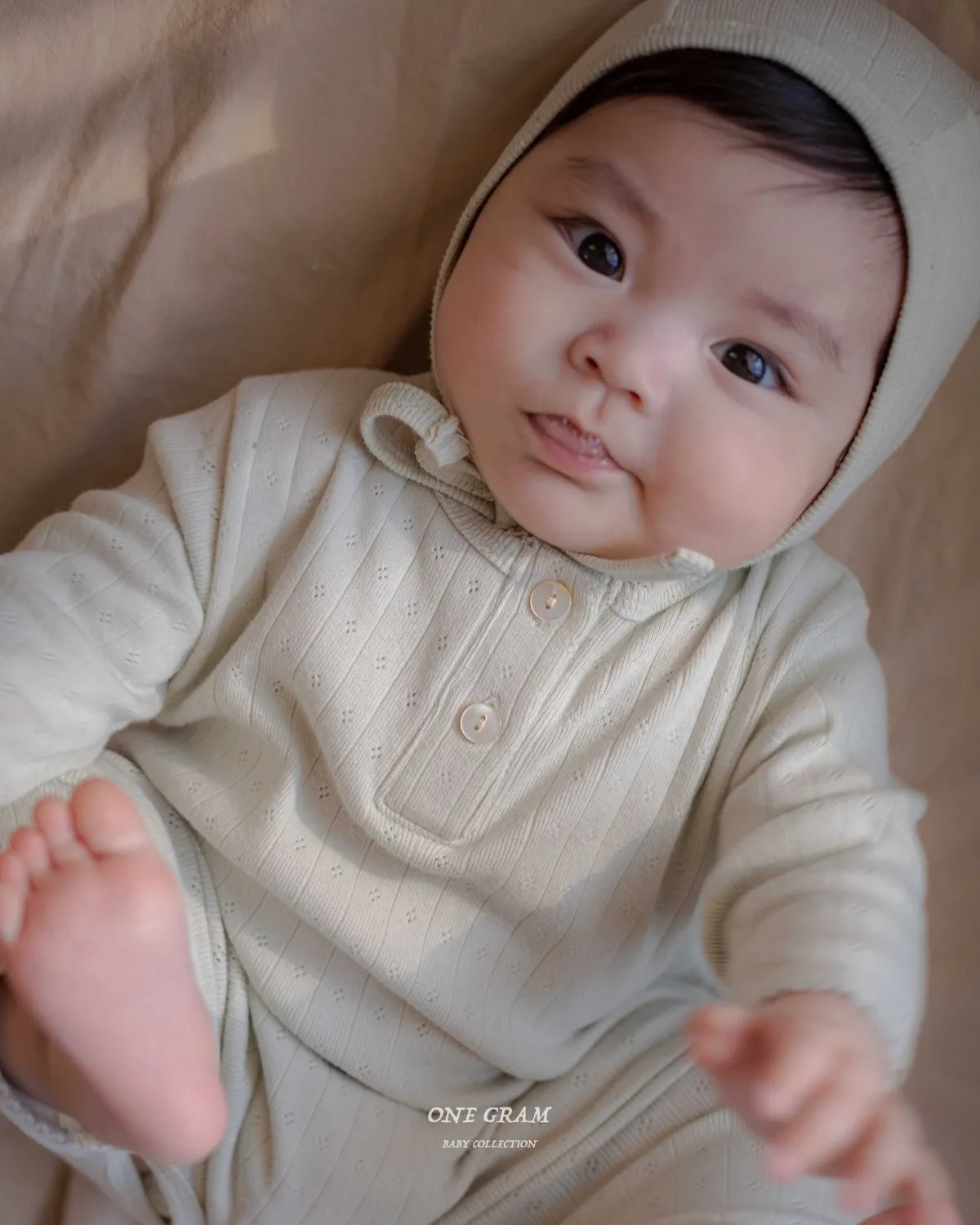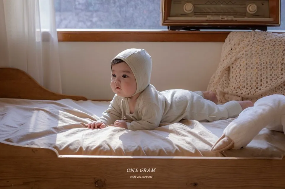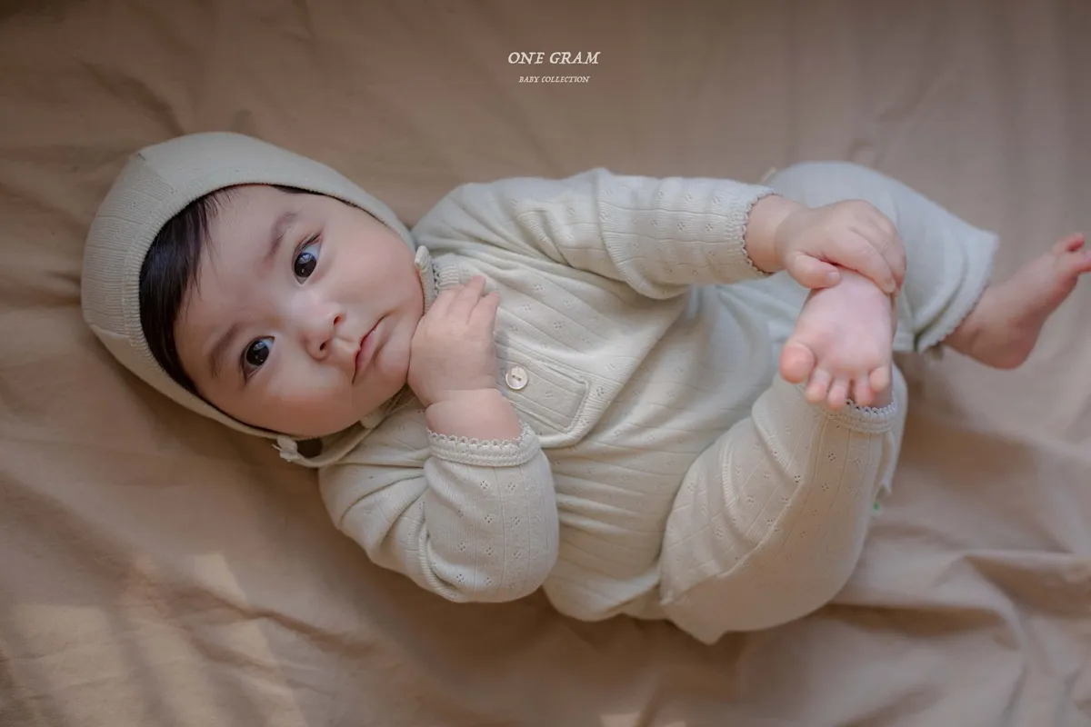 現貨.新生兒純棉直紋包屁套裝(含帽子)