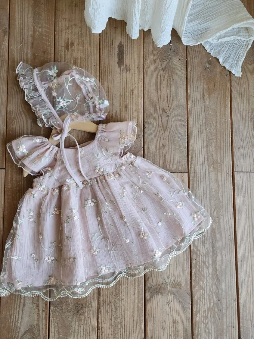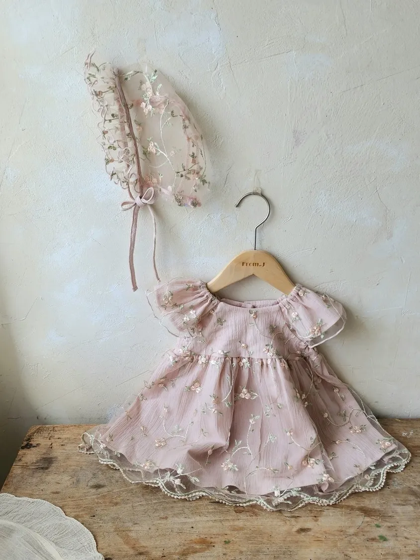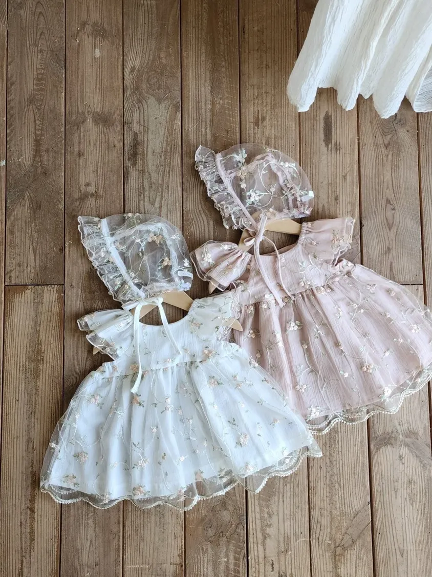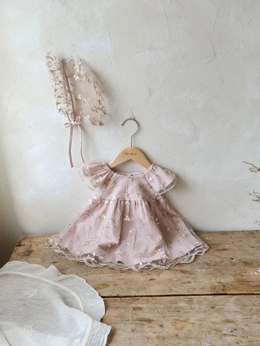 現貨.baby精緻小花包屁洋裝(含帽子)