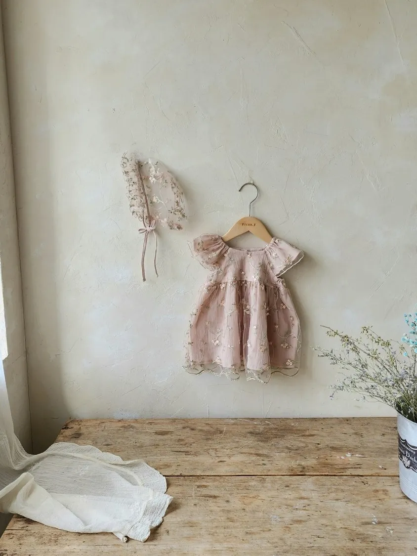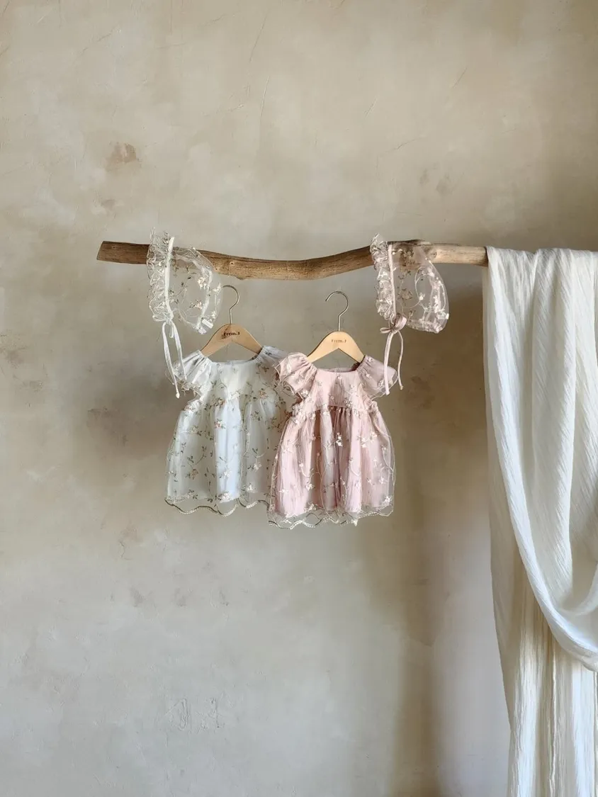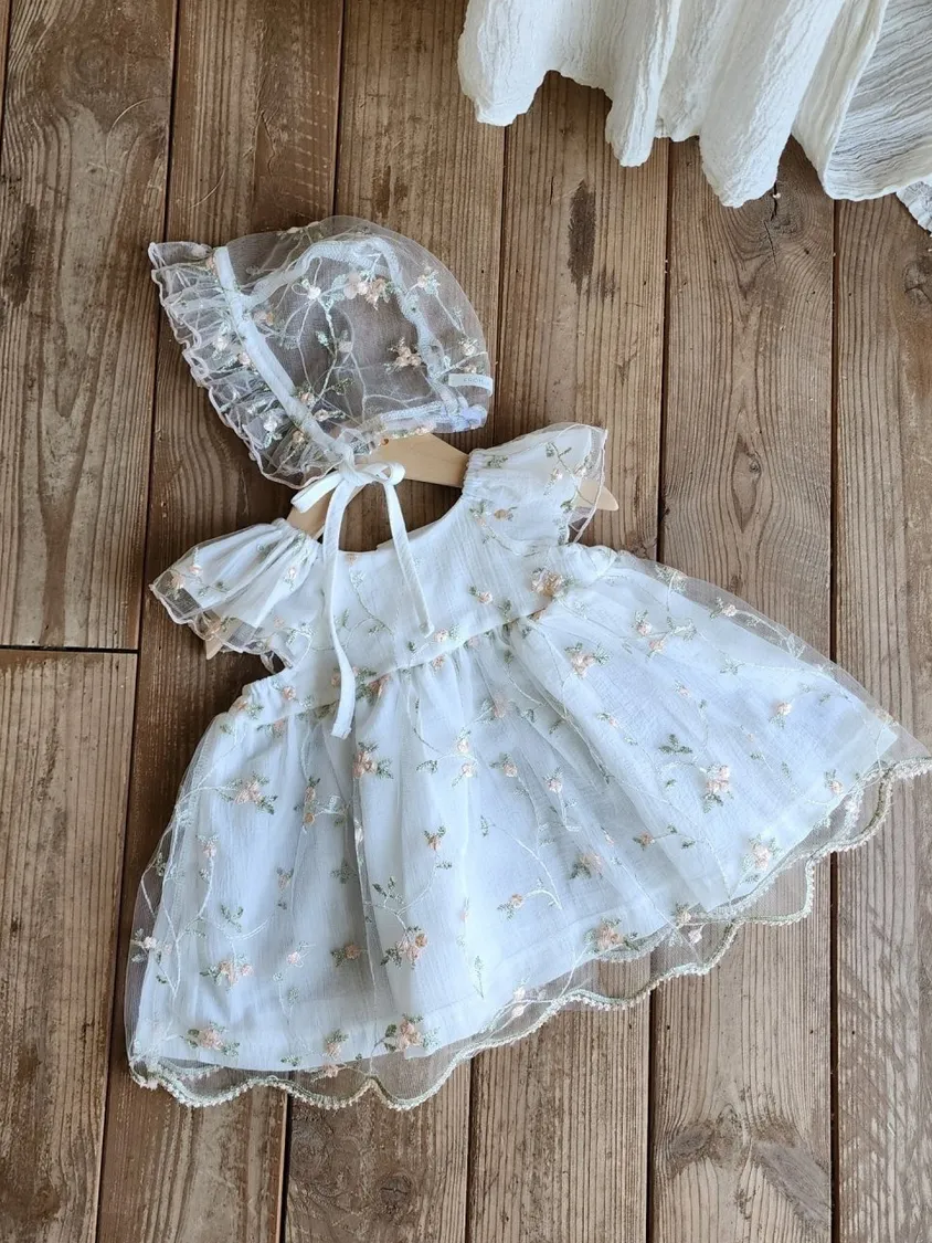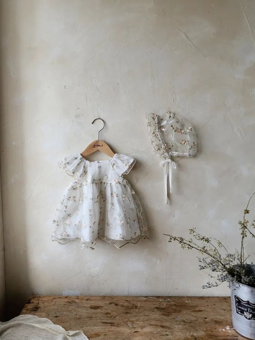 現貨.baby精緻小花包屁洋裝(含帽子)