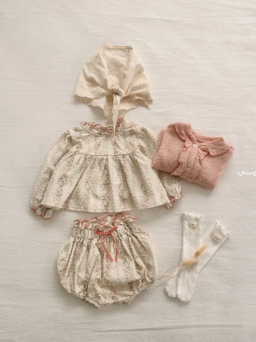預購.baby木耳邊碎花蝴蝶結包屁褲