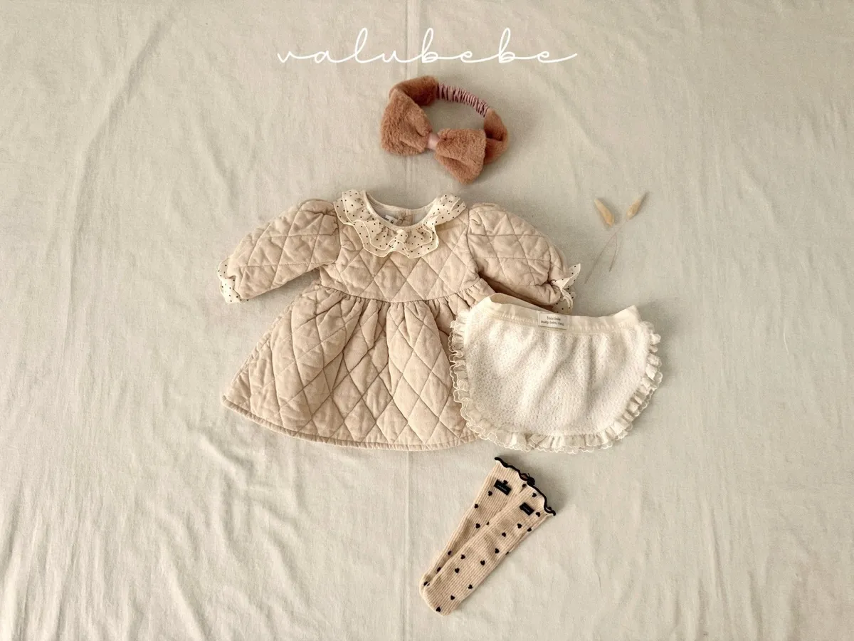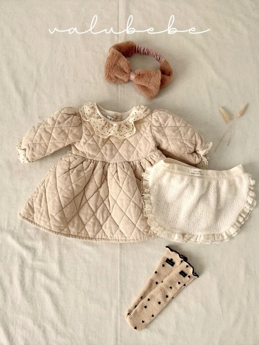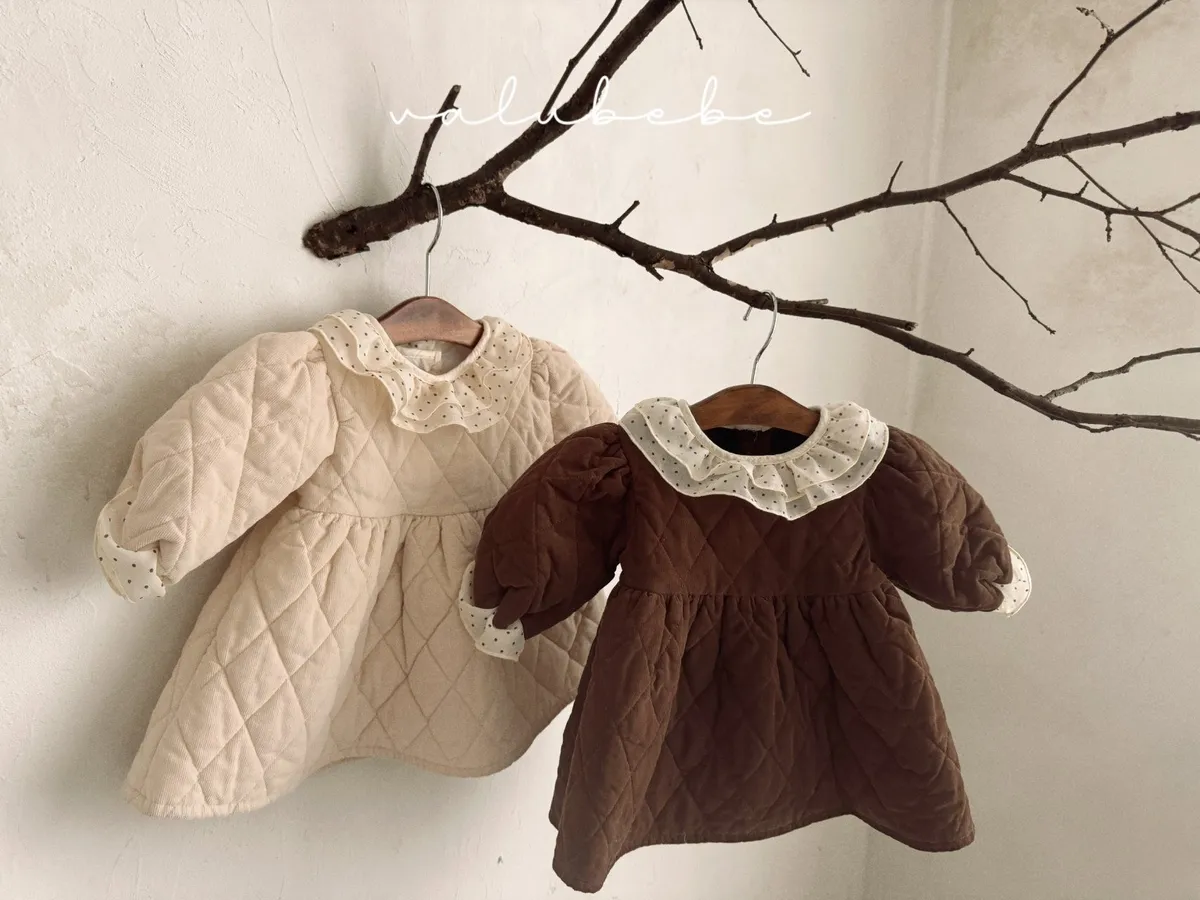 baby冬季菱格紋蕾絲領洋裝