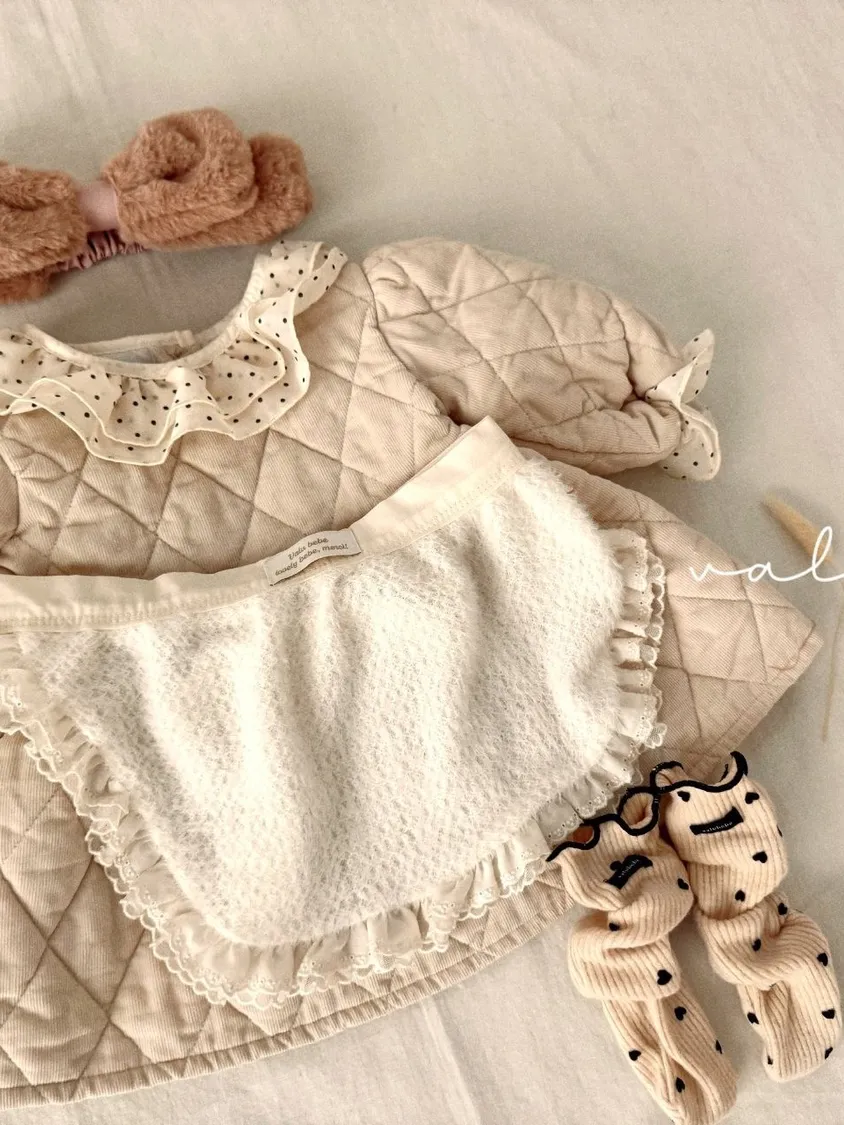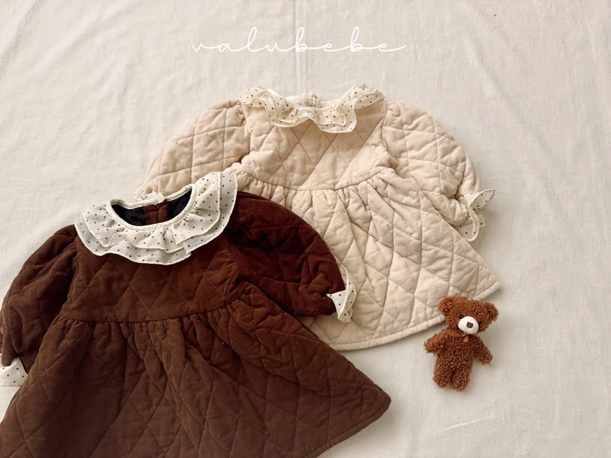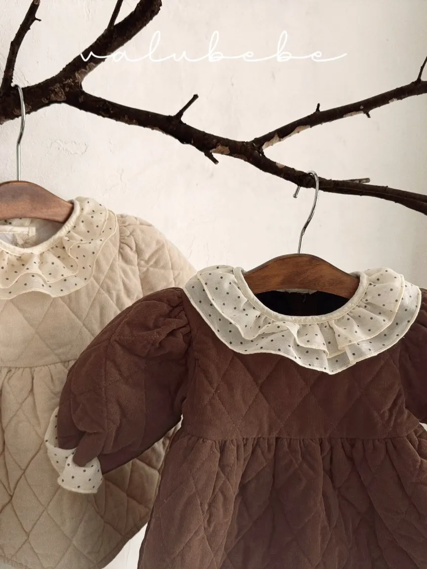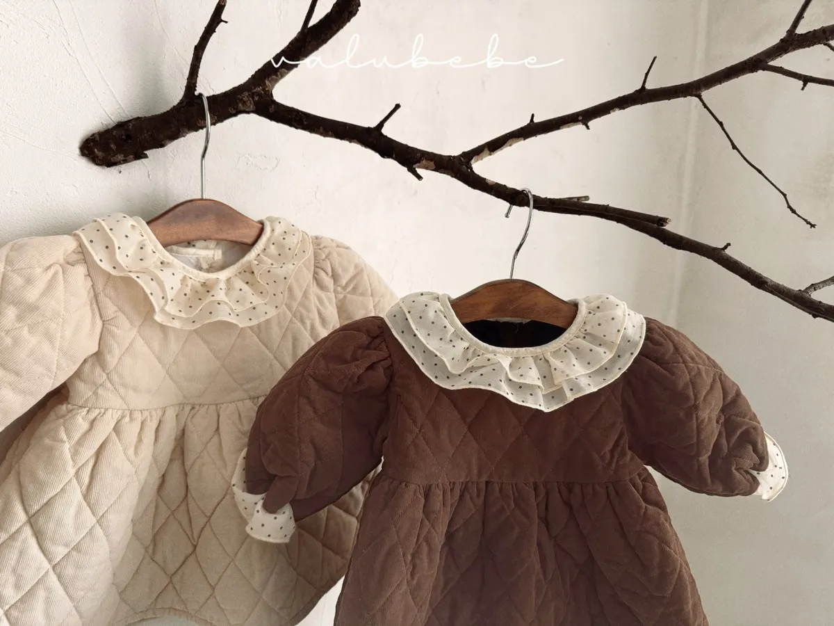 baby冬季菱格紋蕾絲領洋裝