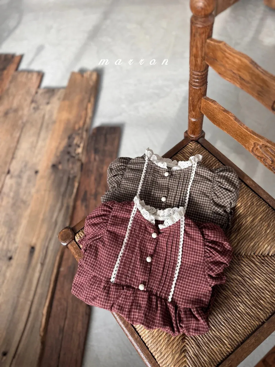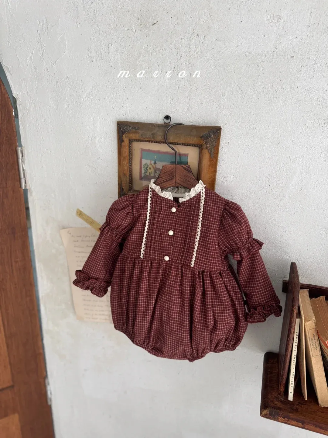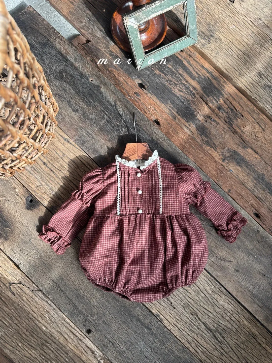baby復古蕾絲格紋包屁衣