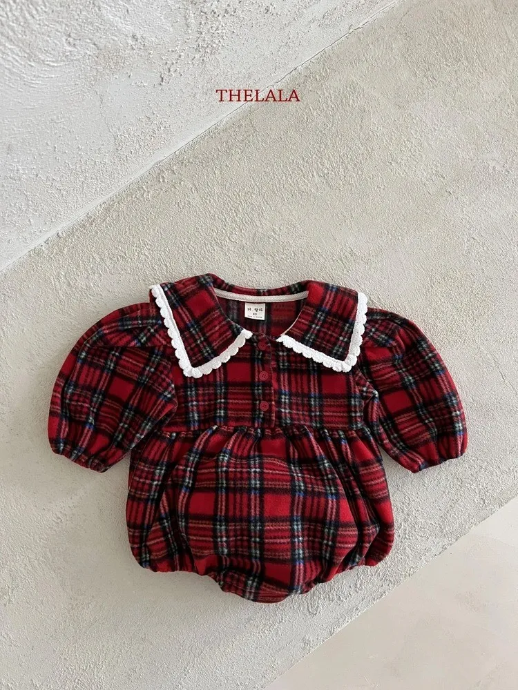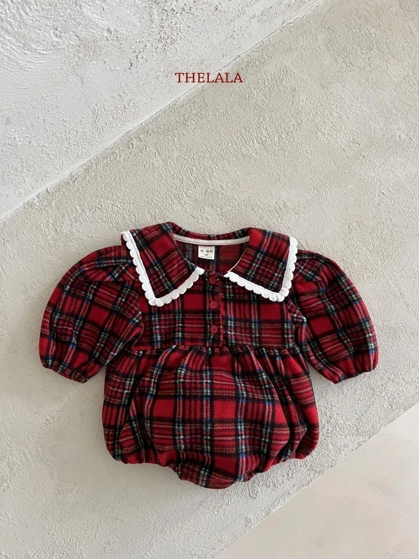 baby冬款紅格紋包屁衣