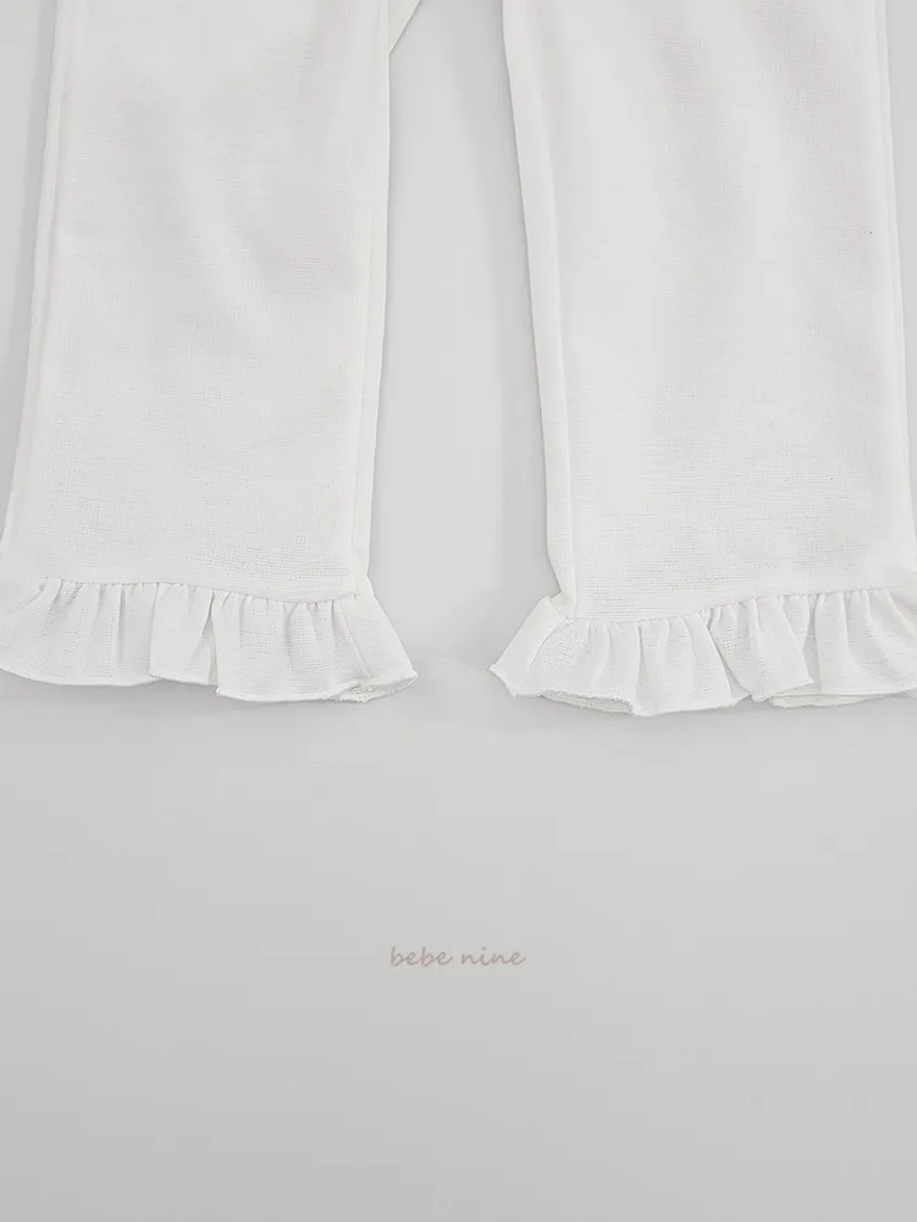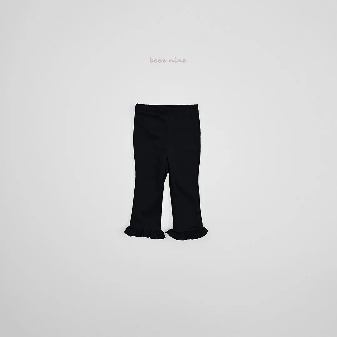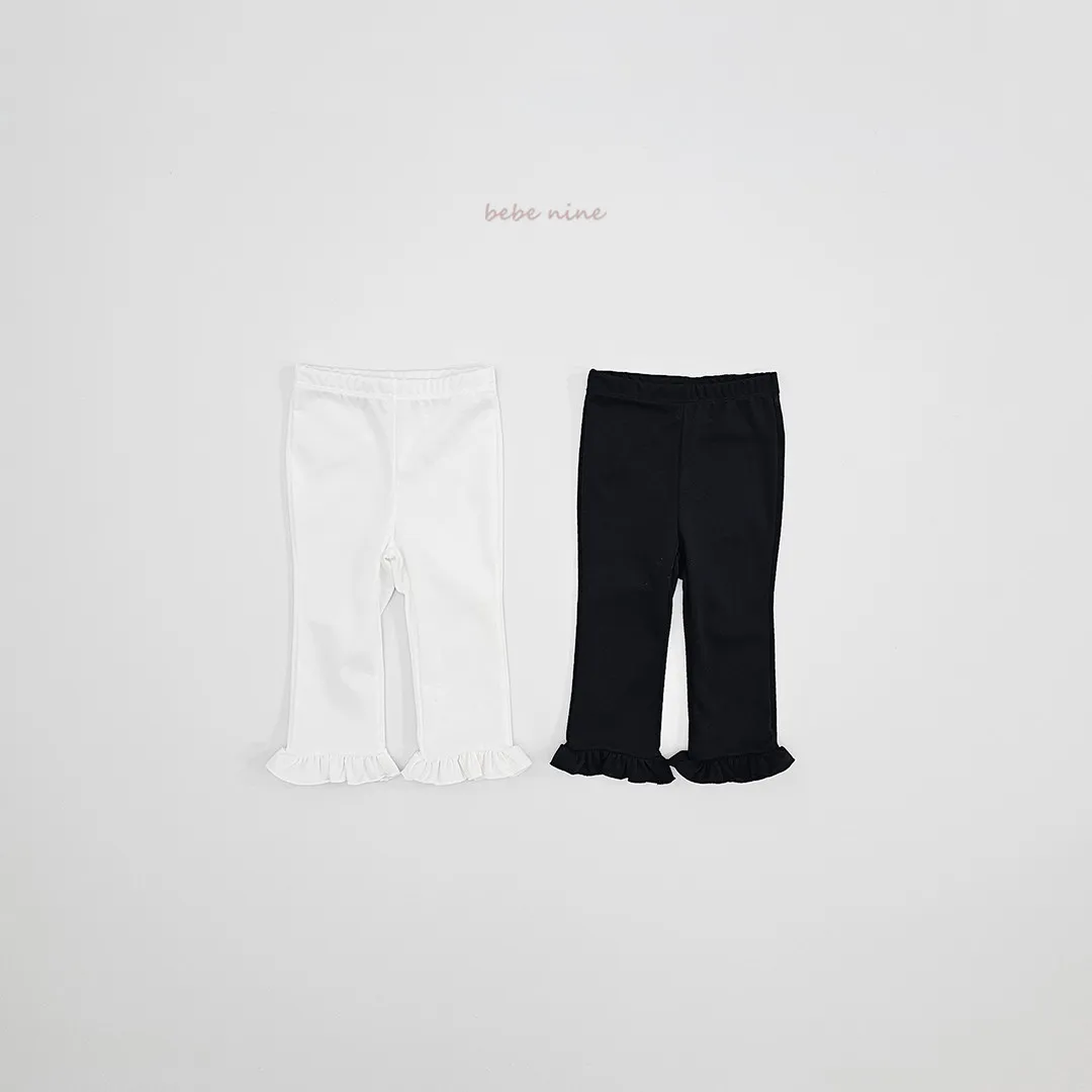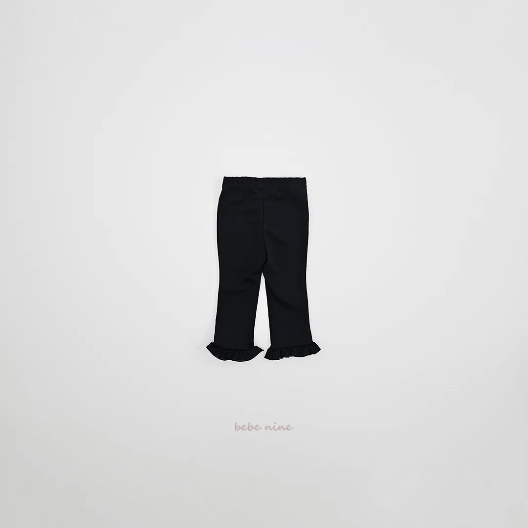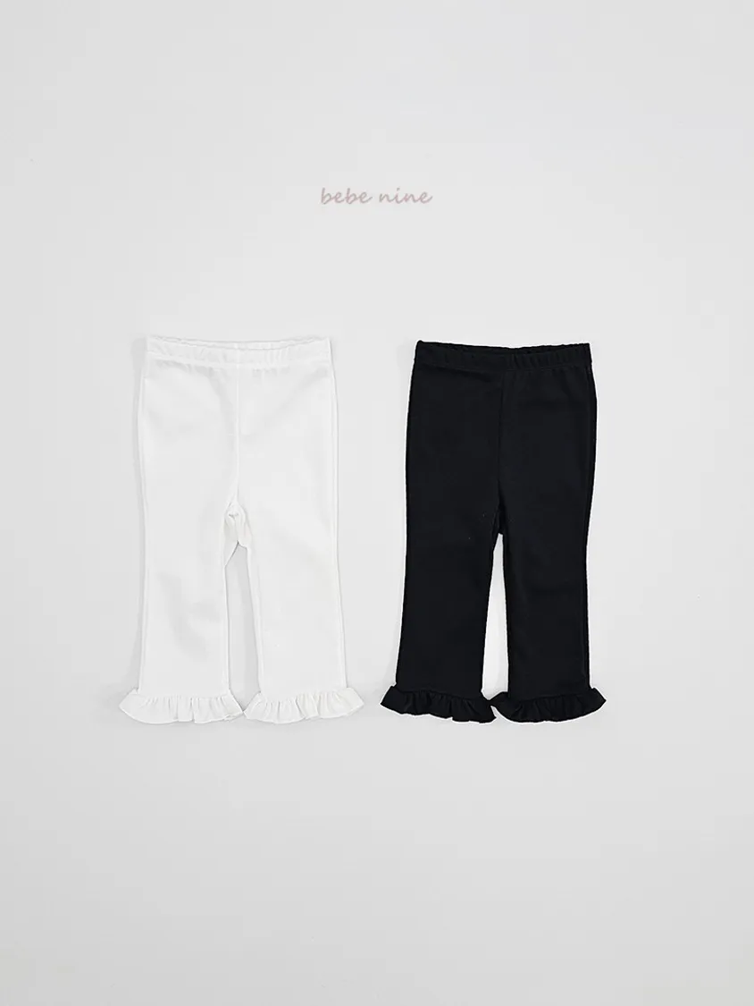 預購|鬆緊腰荷葉擺拼接小喇叭褲