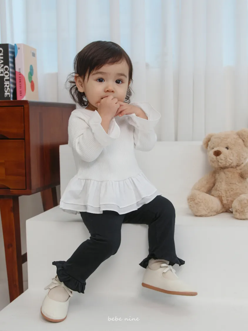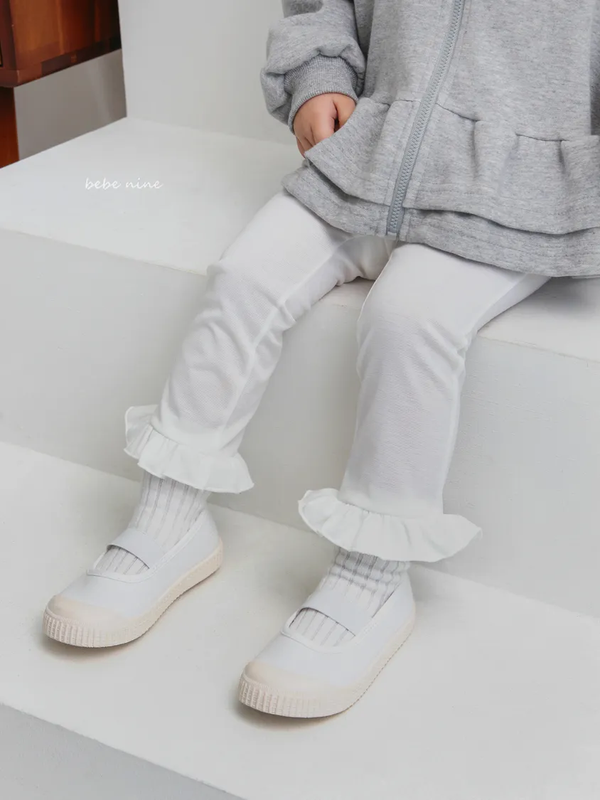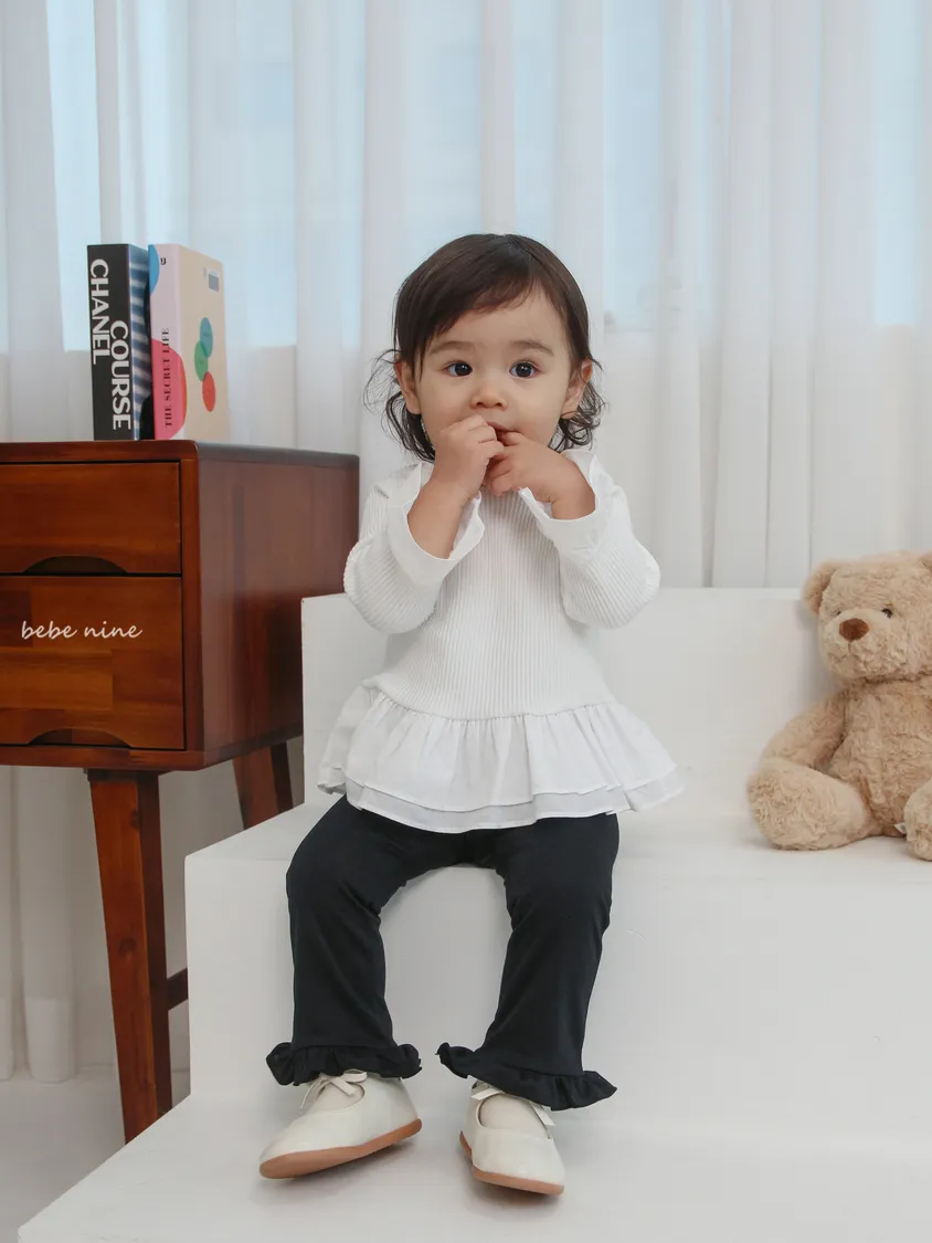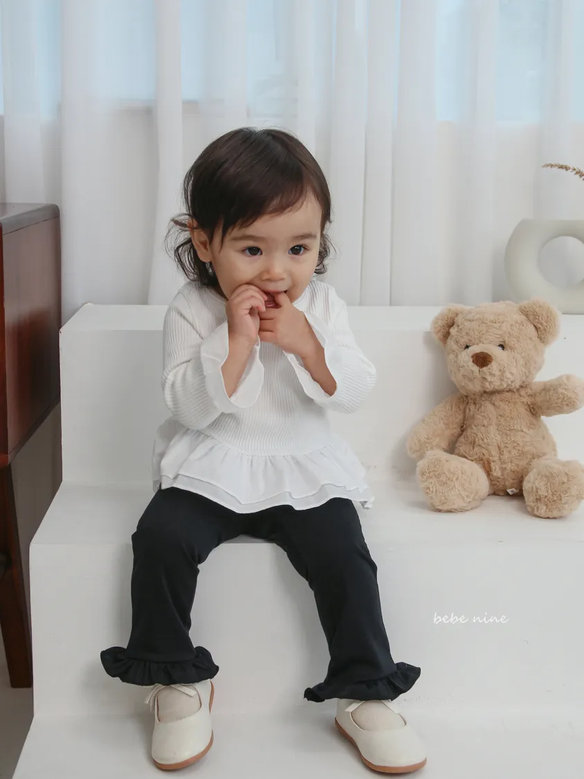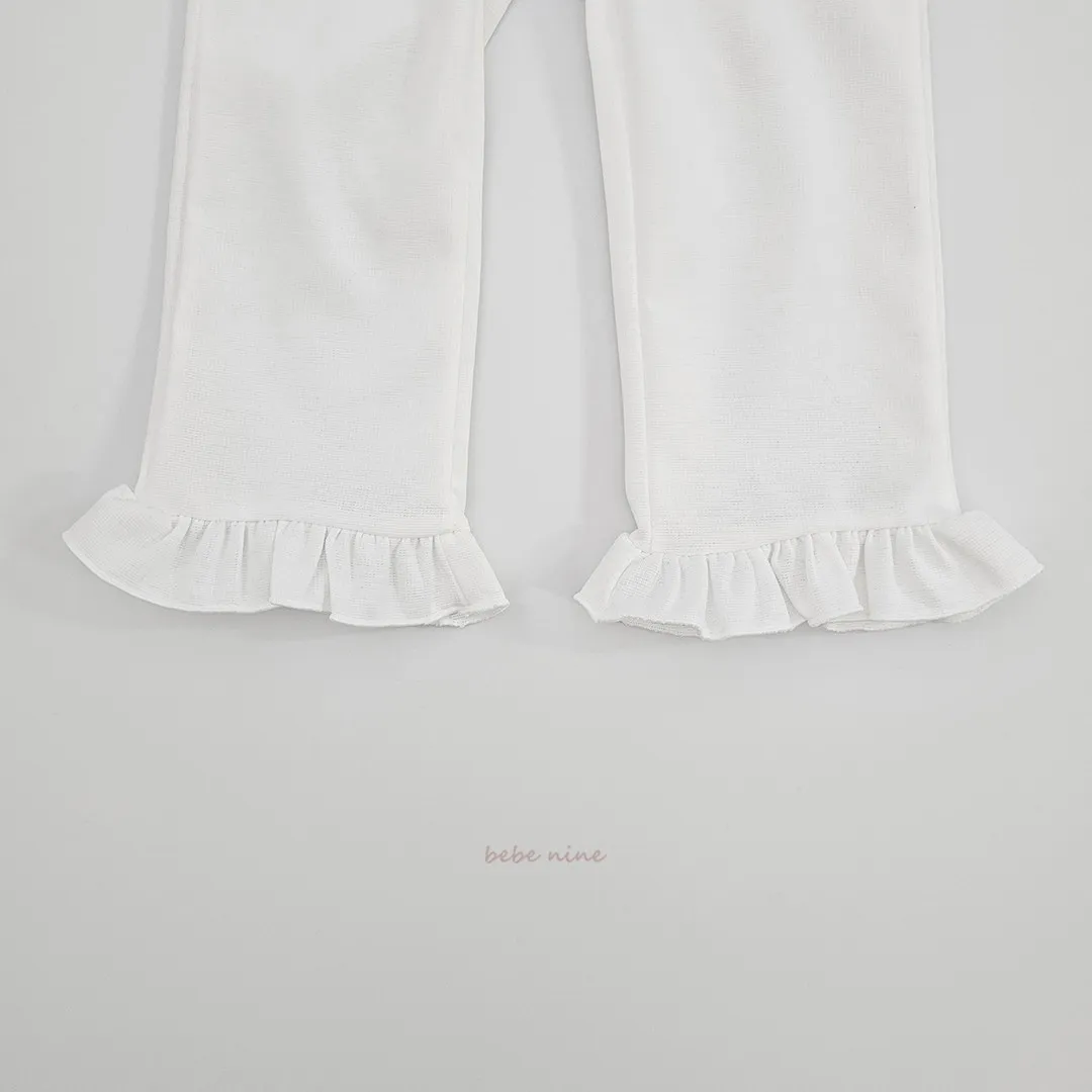預購|鬆緊腰荷葉擺拼接小喇叭褲