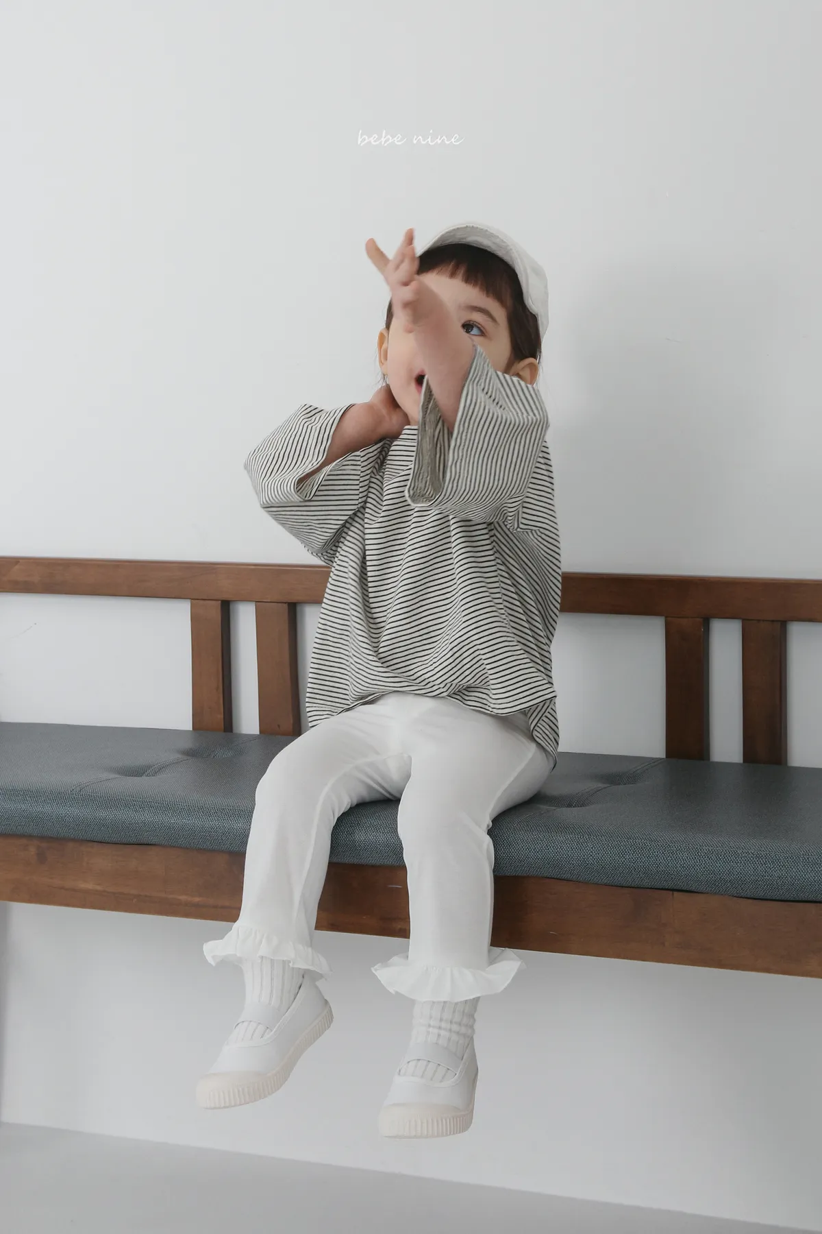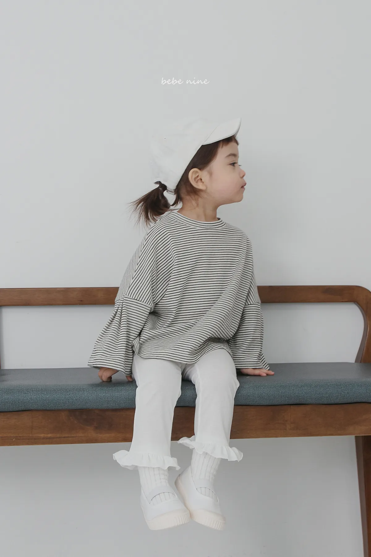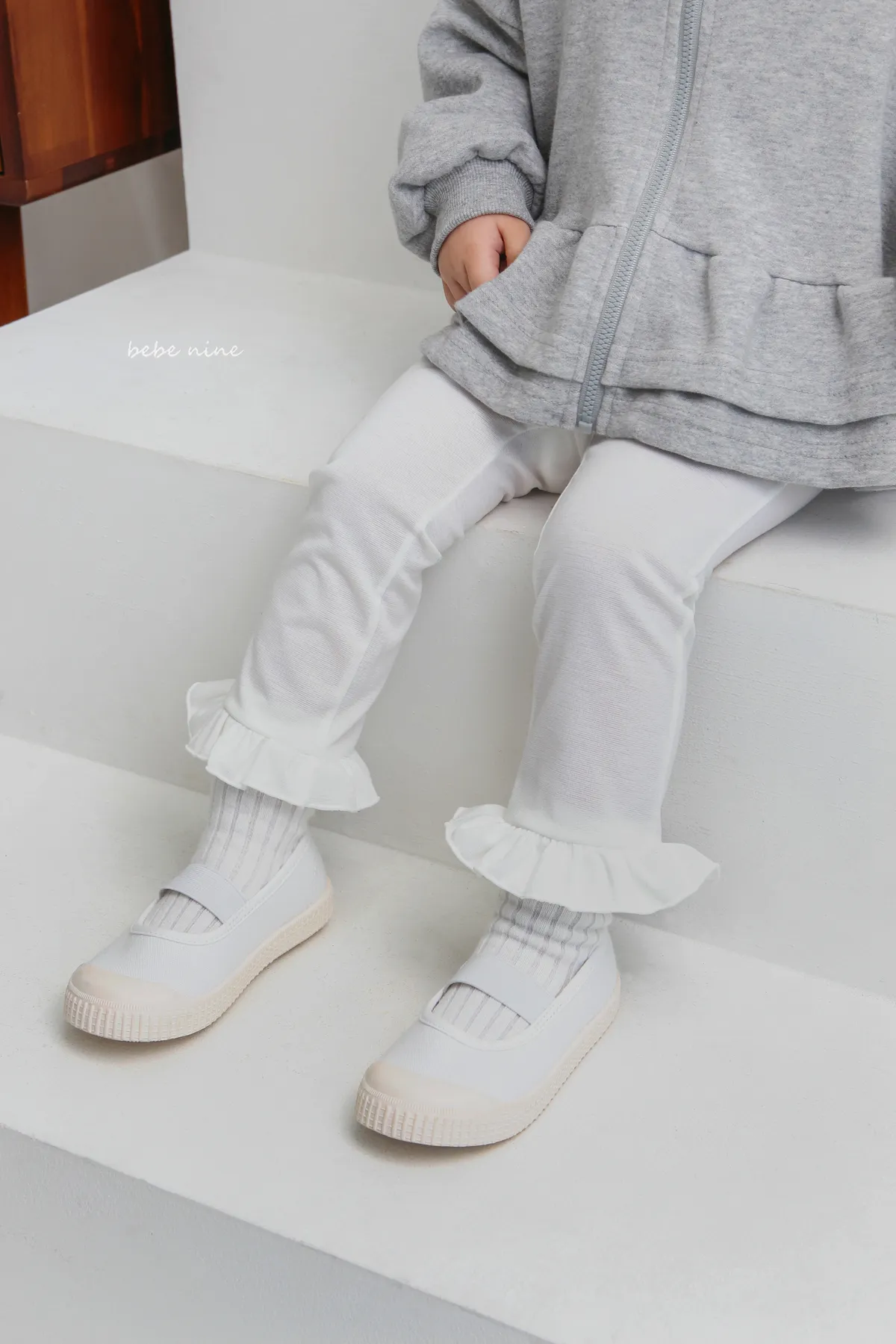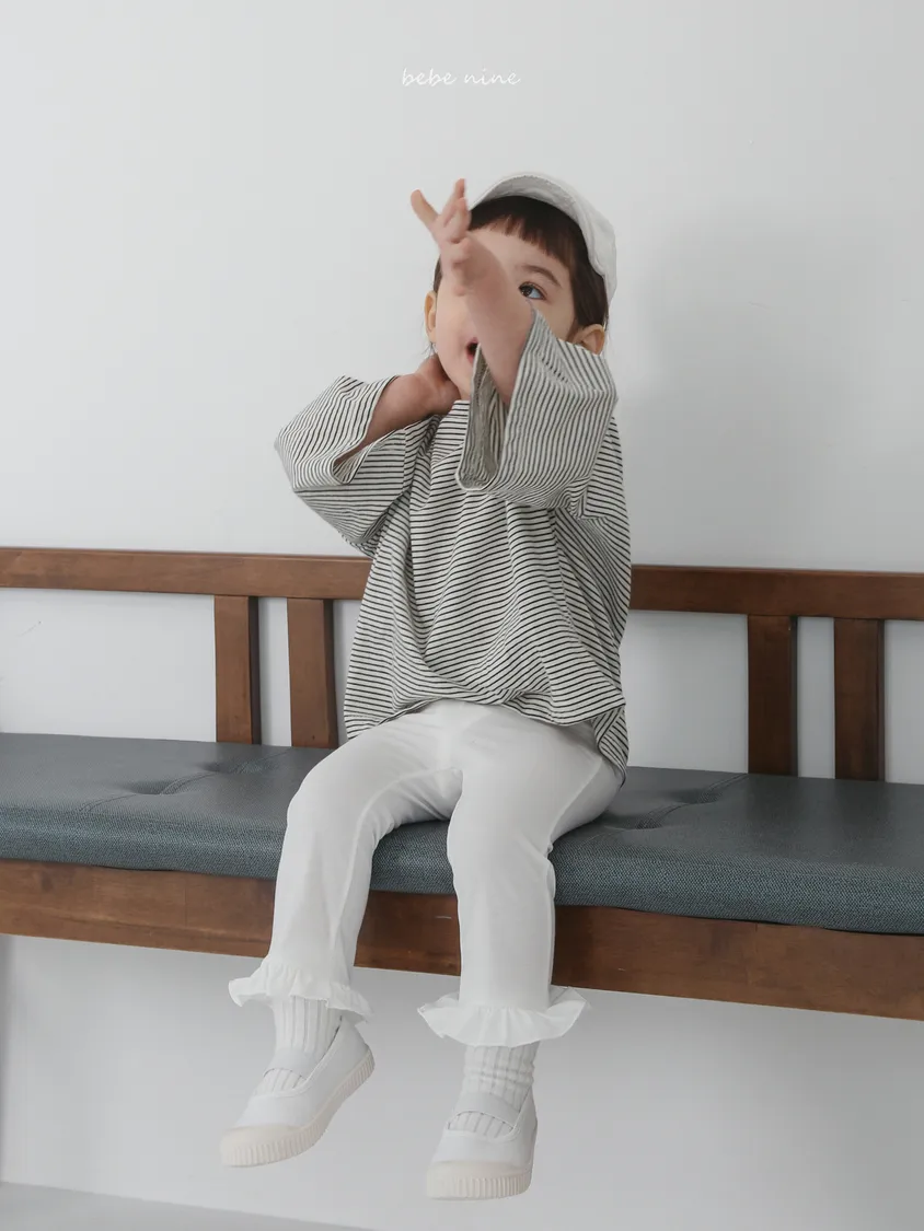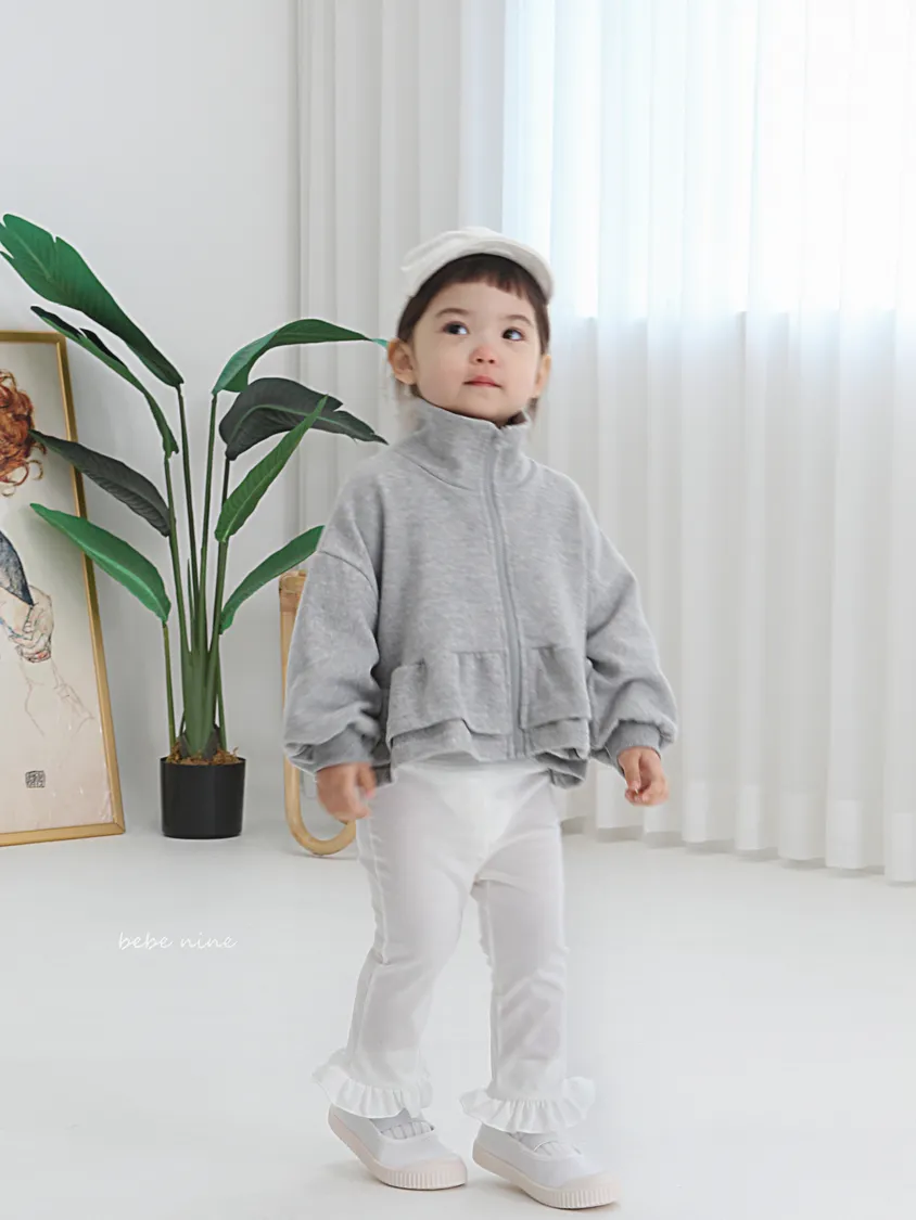預購|鬆緊腰荷葉擺拼接小喇叭褲