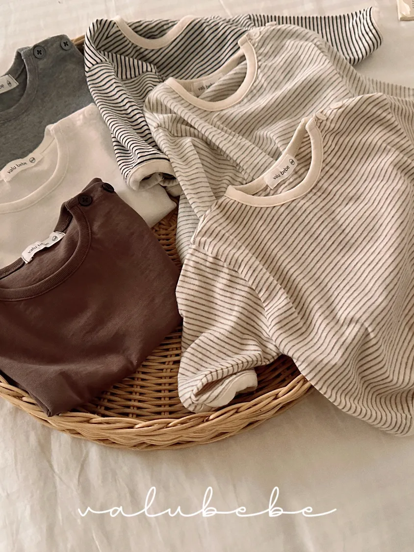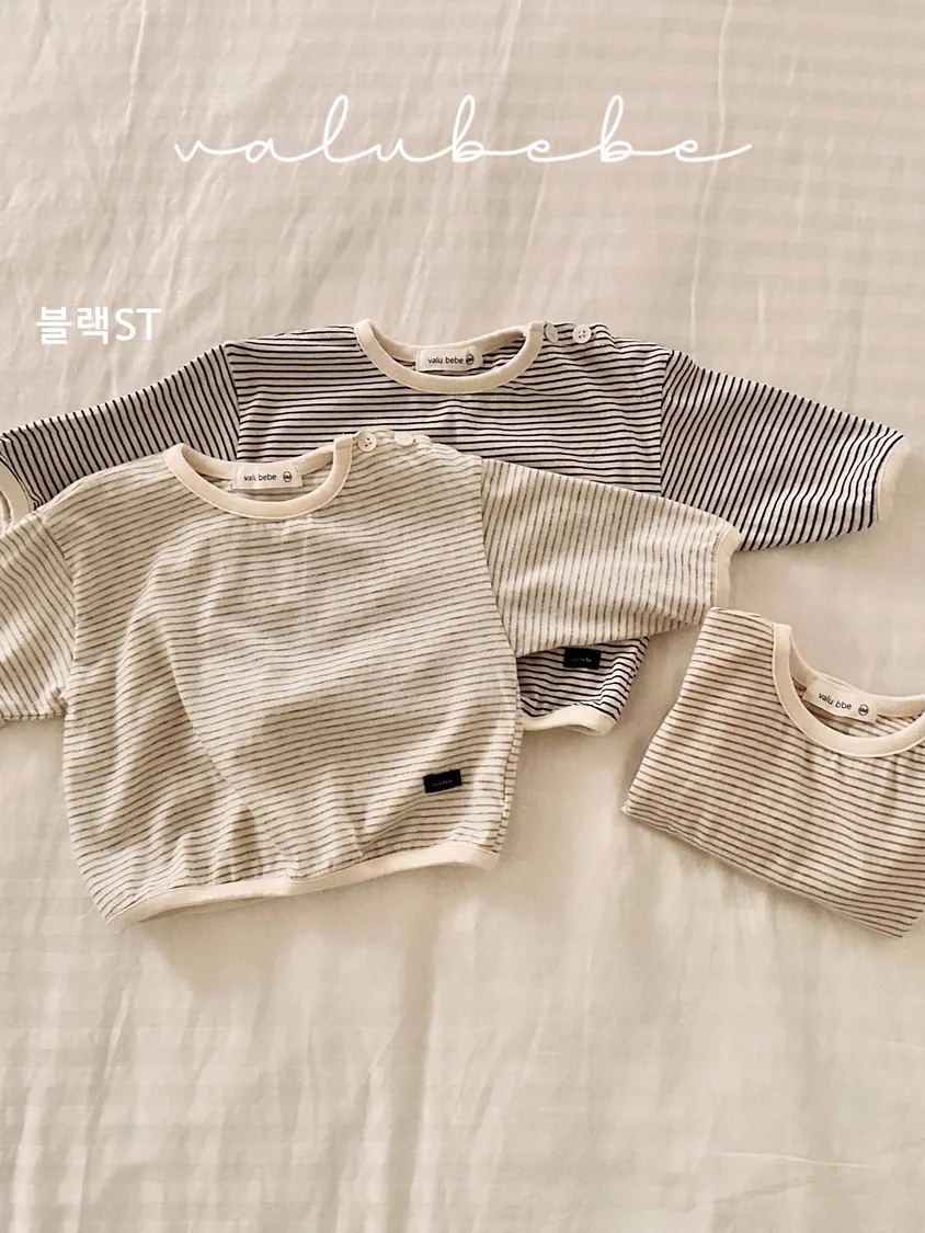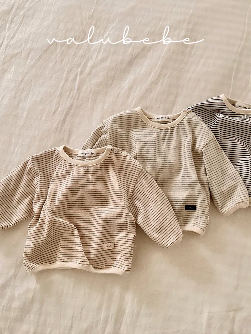 預購|橫條紋領扣長T