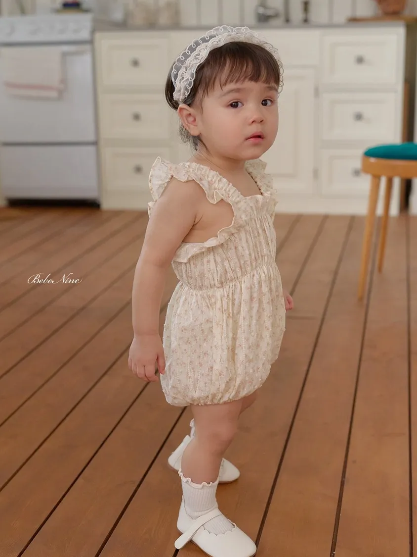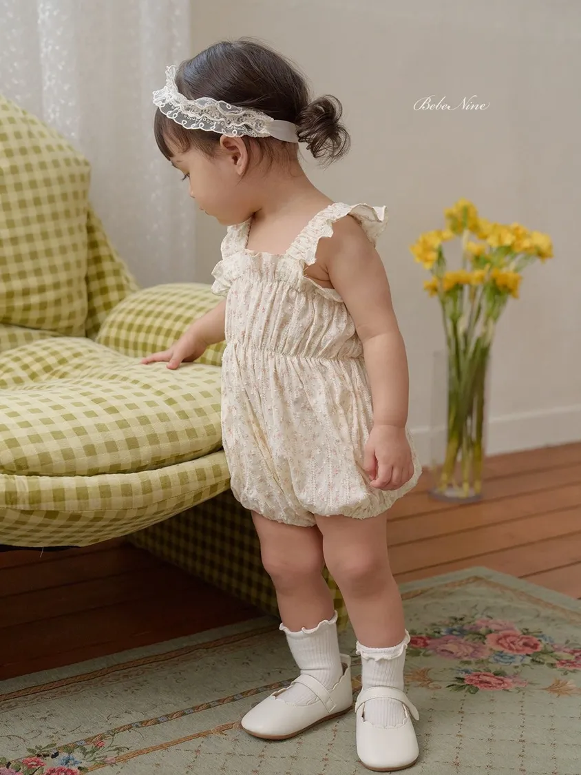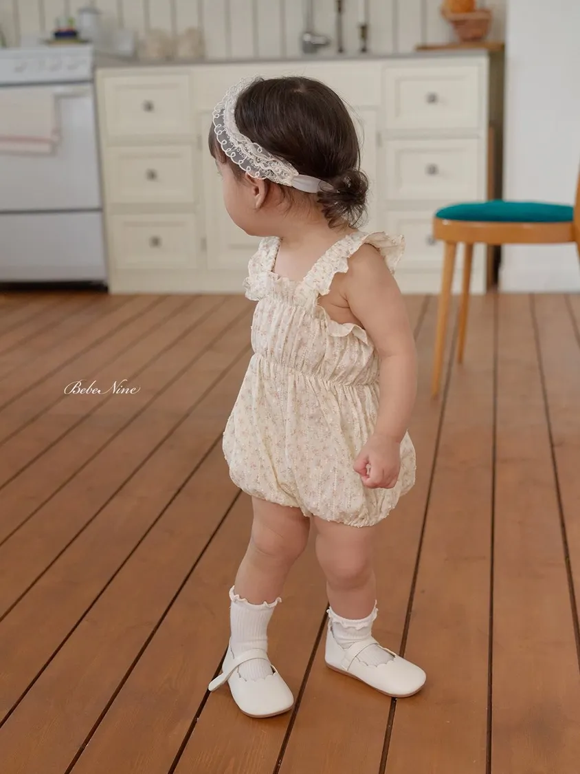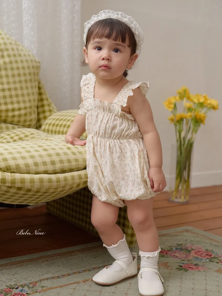 預購|Baby吊帶碎花荷葉包屁衣