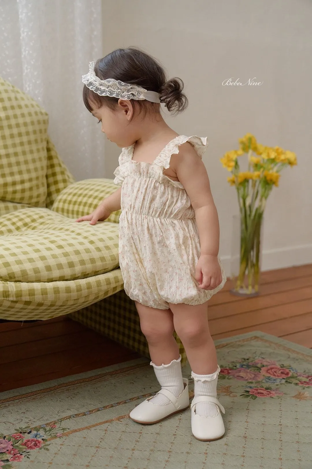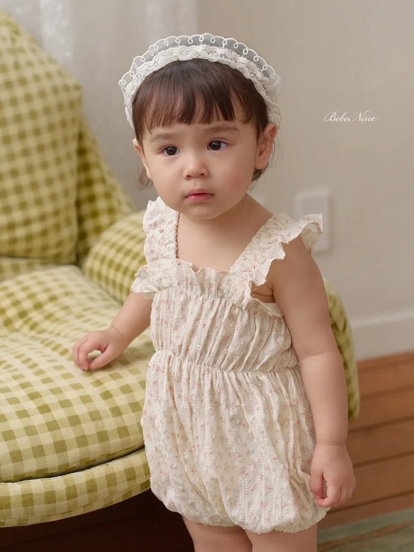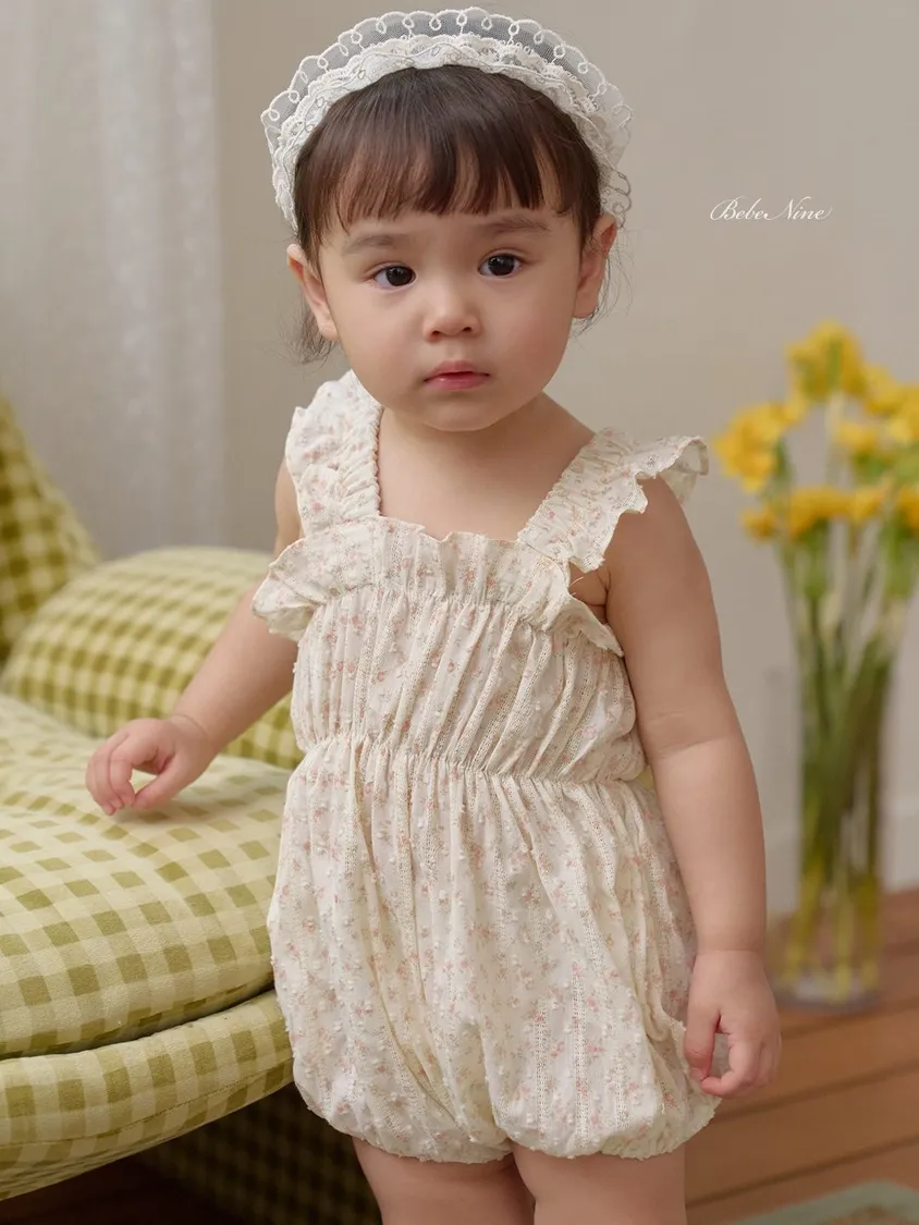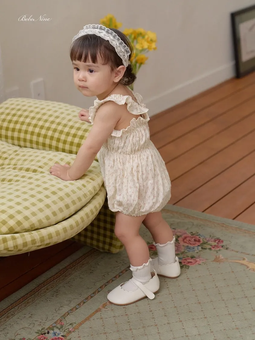 預購|Baby吊帶碎花荷葉包屁衣